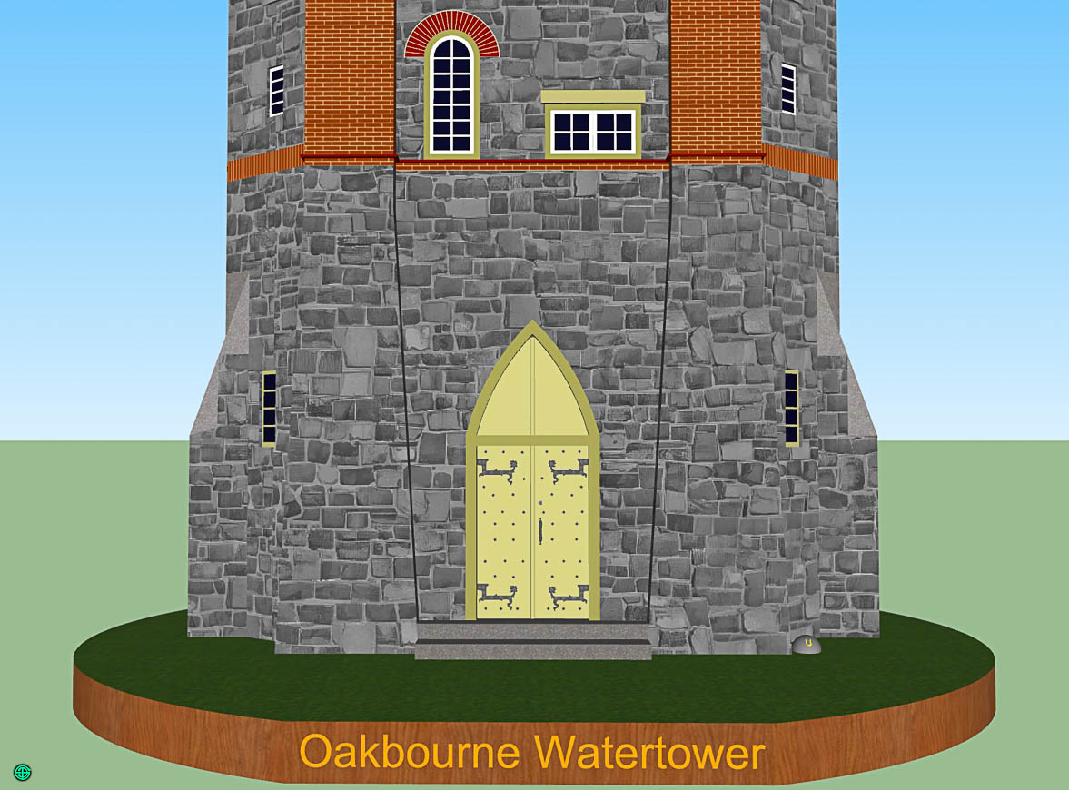 Der abwechslungsreich gestaltete Unterteil des Wassserturms.