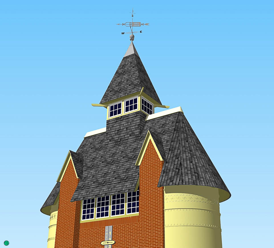 Das Gebäude wurde auch als Aussichtsturm konzipiert. Aber nun sind die Bäume höher als die Fenster des Dachreiters.