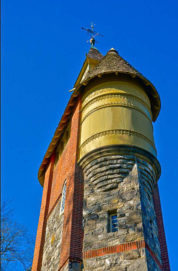 Einer der beiden je 500 Gallonen (1892 Liter) fassenden Wassertanks. Sie tragen hübsche Verzierungen.